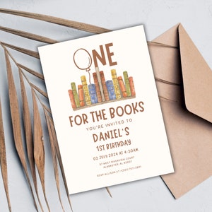 Book Themed First Birthday Invitation | ONE for the Books | Editable ...