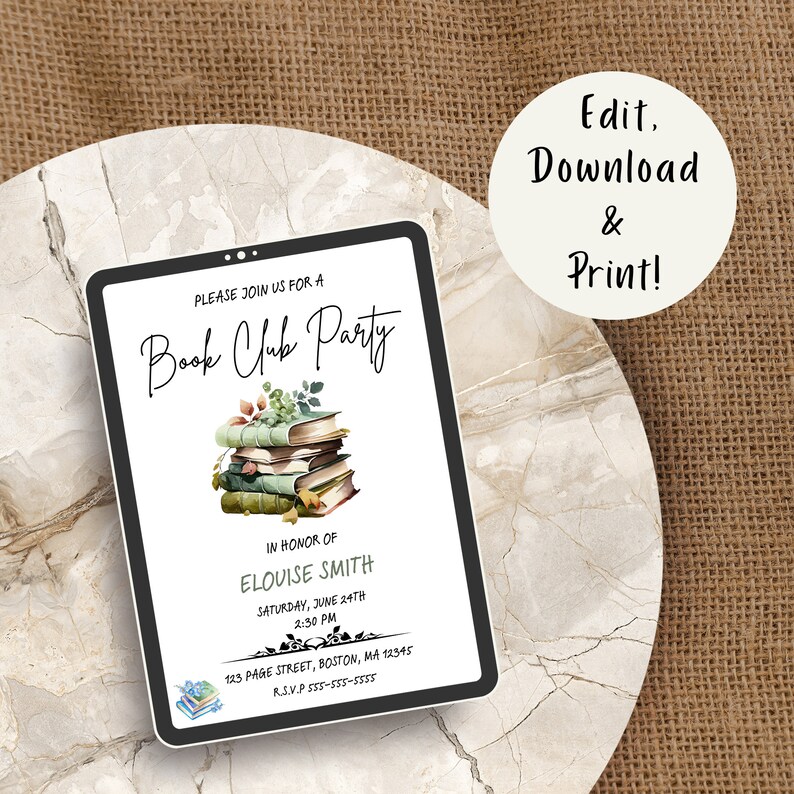 Book Club Invite | Customizable Template | Digital Download | Editable ...