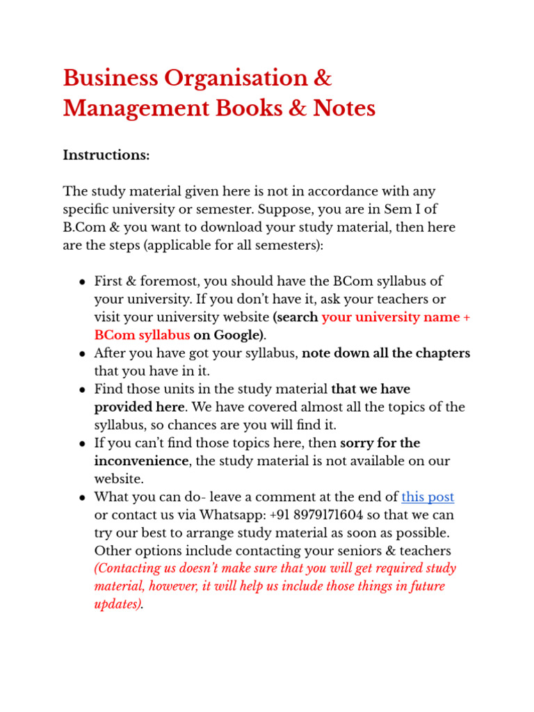 Business Organisation and Management Books & Notes | PDF