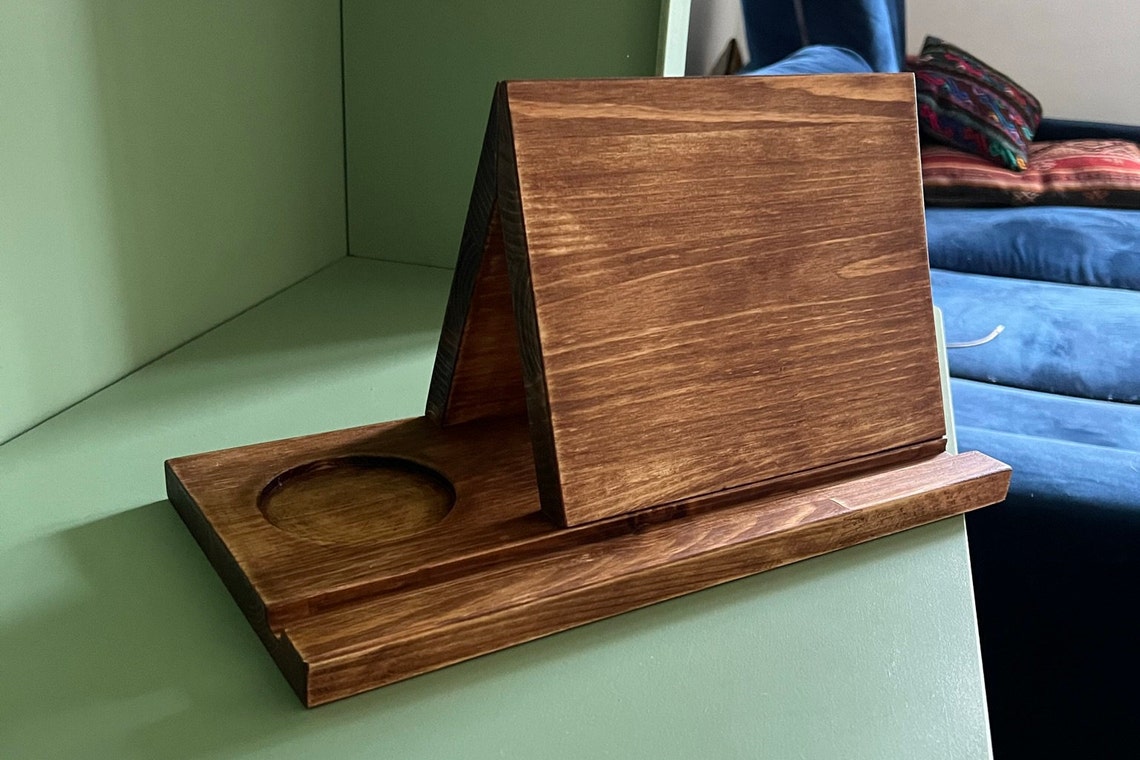 Wooden Book Rest: Triangle Bookstand With Wireless Phone Charger - Etsy
