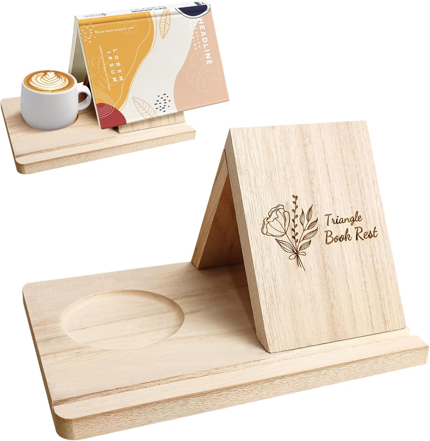 Yitexin Triangle Wood Book Rest with Cup Holder, Mini Wooden Book ...