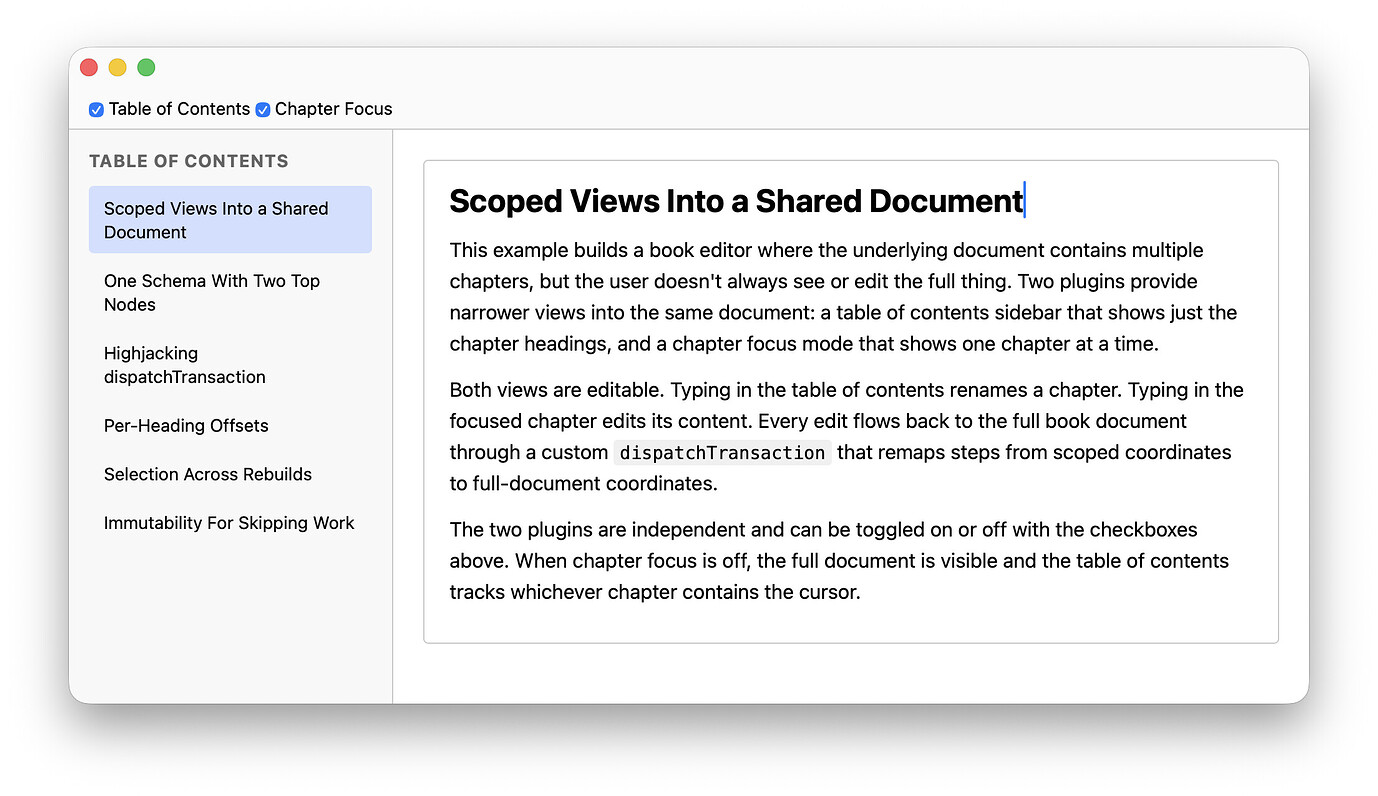 Patterns for rendering subsets of a document - discuss.ProseMirror