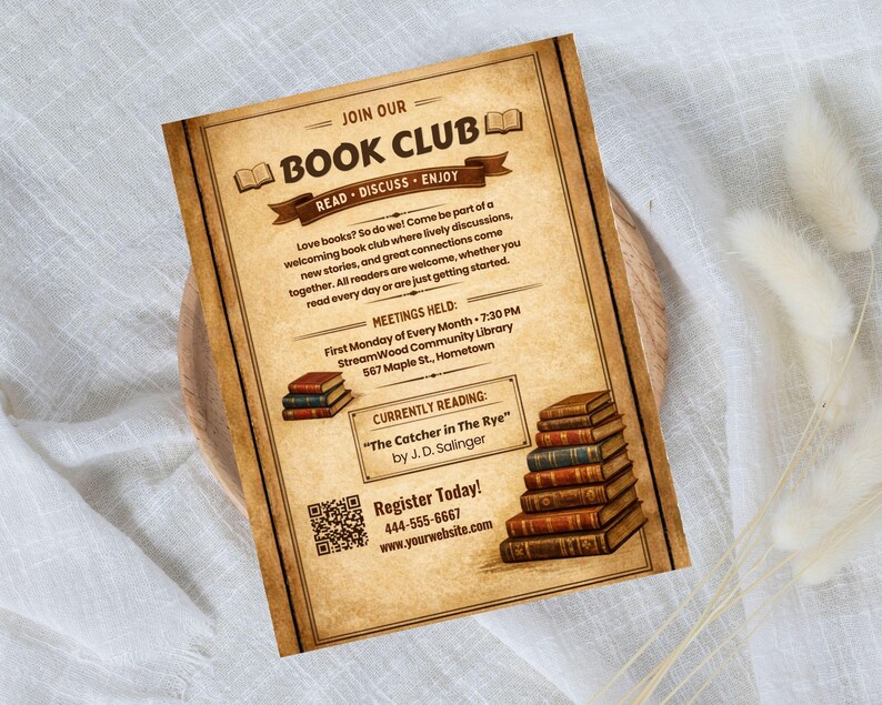 Editable Book Club Flyer Template | Canva Reading Group Event (8.5x11 ...