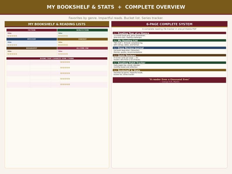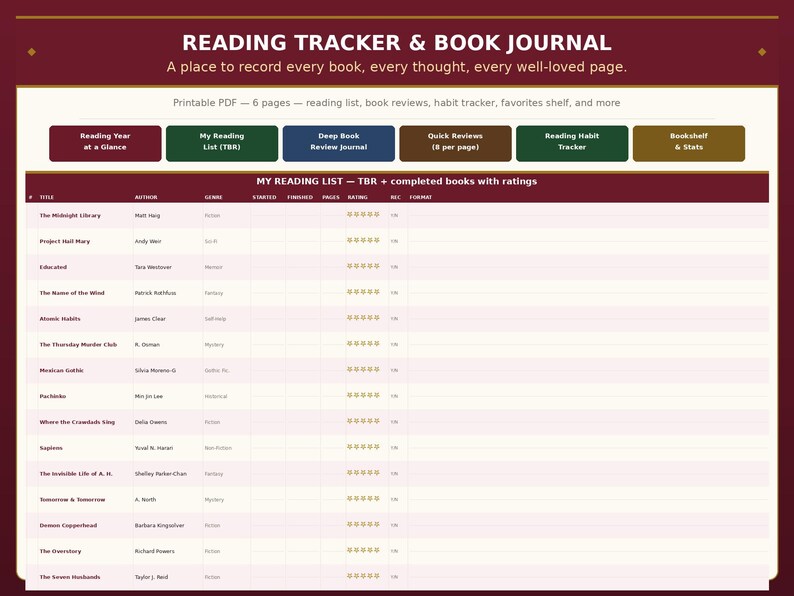 Reading Tracker Journal | Book Log, Review Template, Habit Tracker (PDF ...