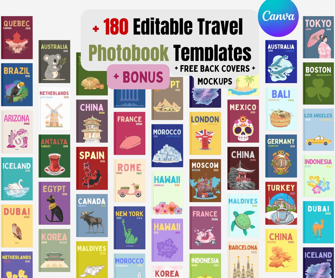 180+ Editable Travel Photobook Templates Bundle Full Cover Summer ...