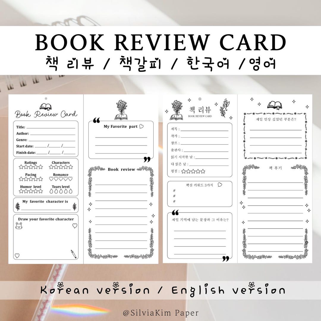 Book Review Card & Bookmark Template (korean/english PDF Download) - Etsy