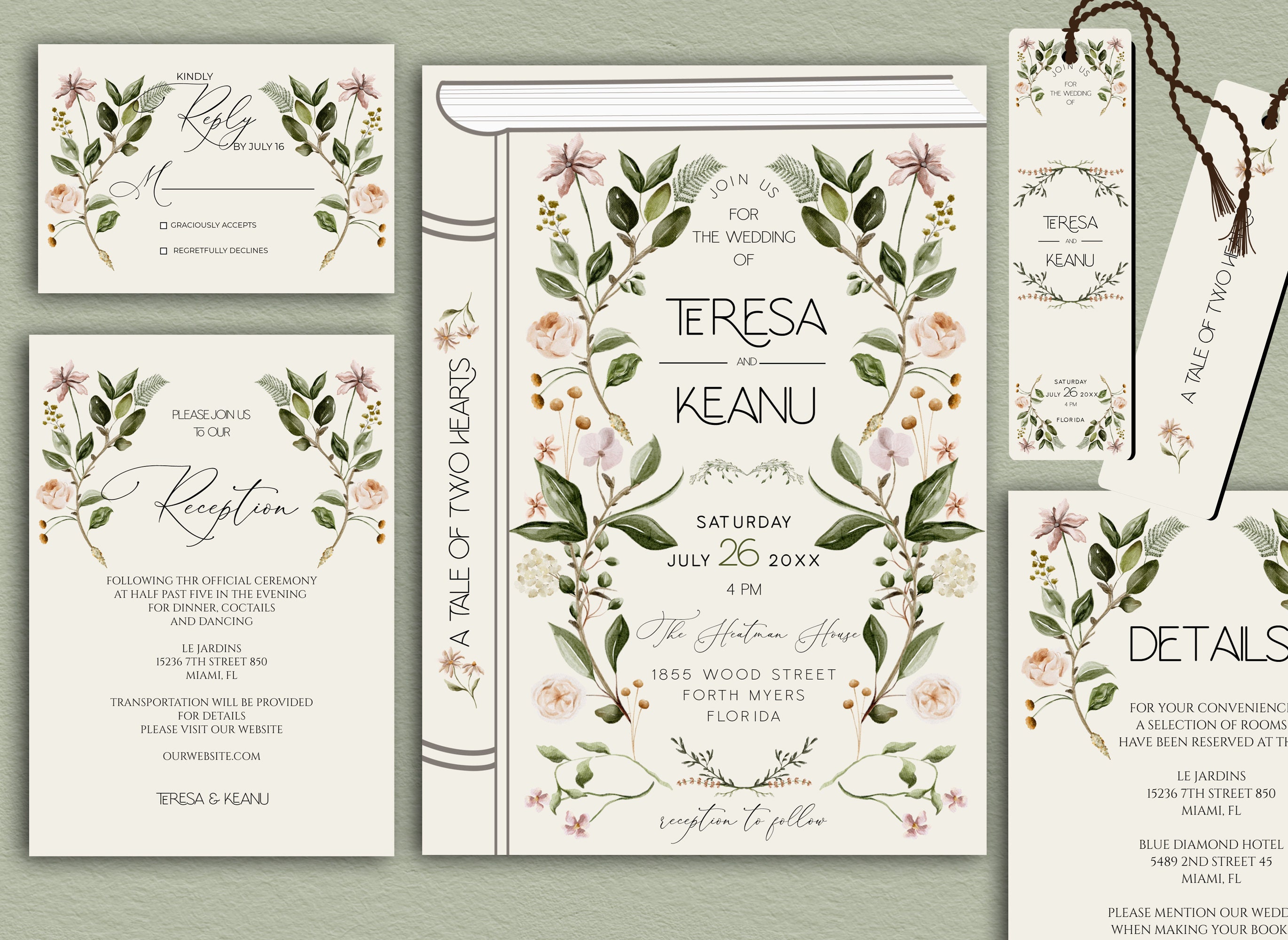 Book Cover Wedding Invitation Suite, Literary Book Invite, Book Theme ...