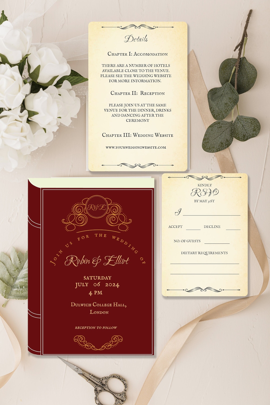 Printable Vintage Book Style Wedding Invitation Template Set - Etsy