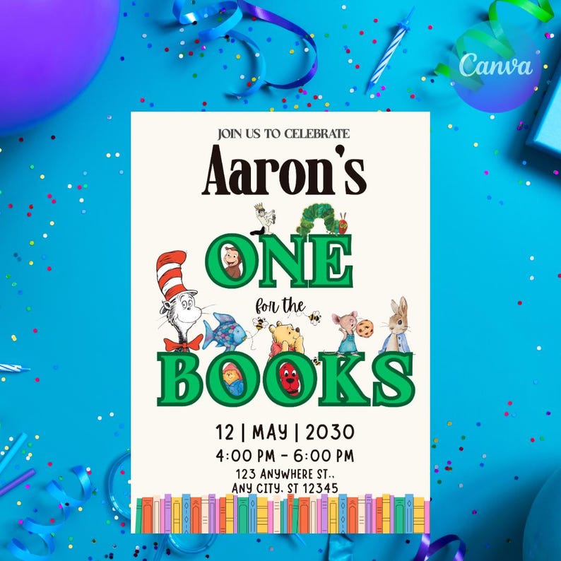 One for the Books Digital Invitation Sign Edit Instant on Canva - Etsy
