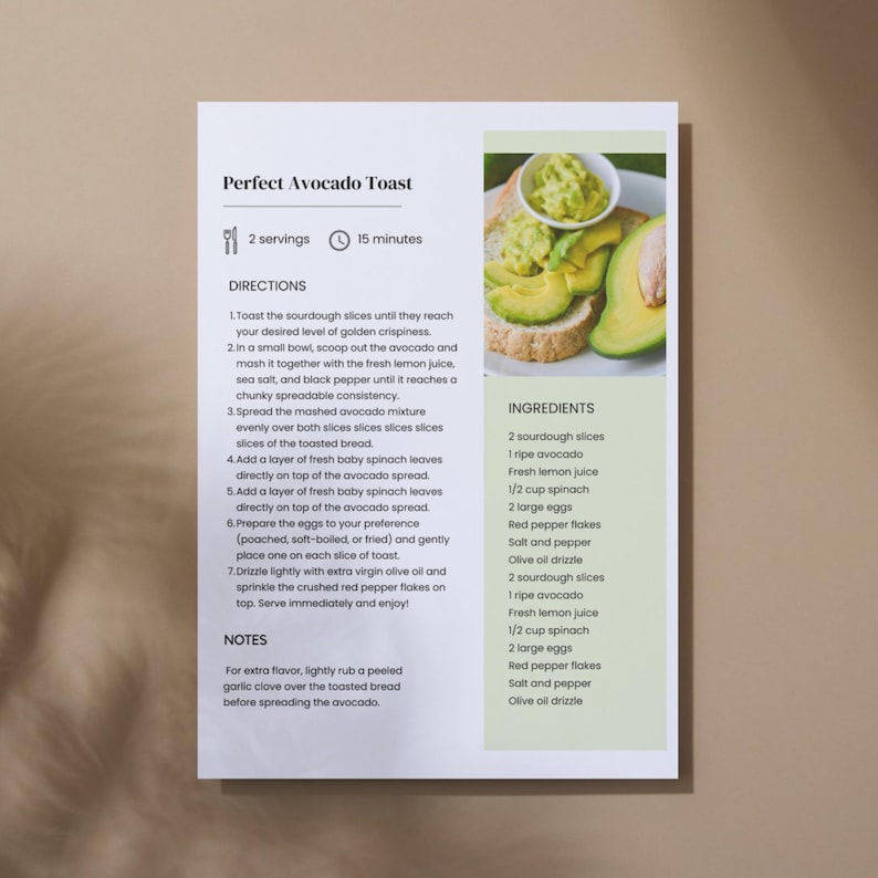 Recipe Card Design | Blank Recipe Card Print | Digital Recipe Book ...