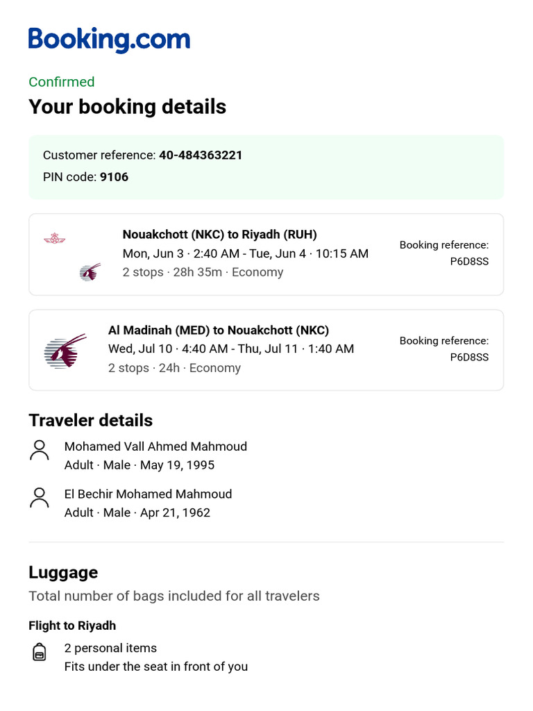 Booking Confirmation: Flight Details | PDF