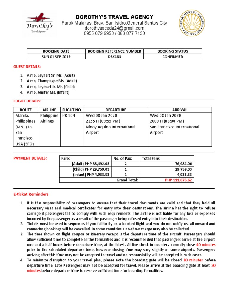 Dorothy'S Travel Agency: Booking Date Booking Reference Number Booking ...