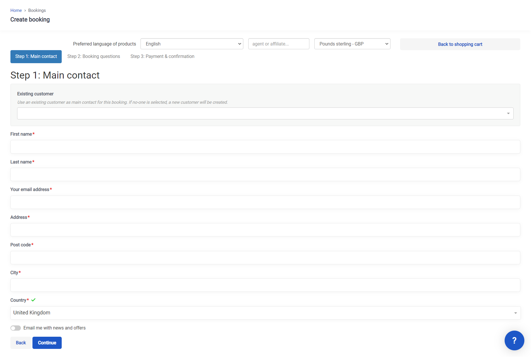 How to add a booking within the Create booking section