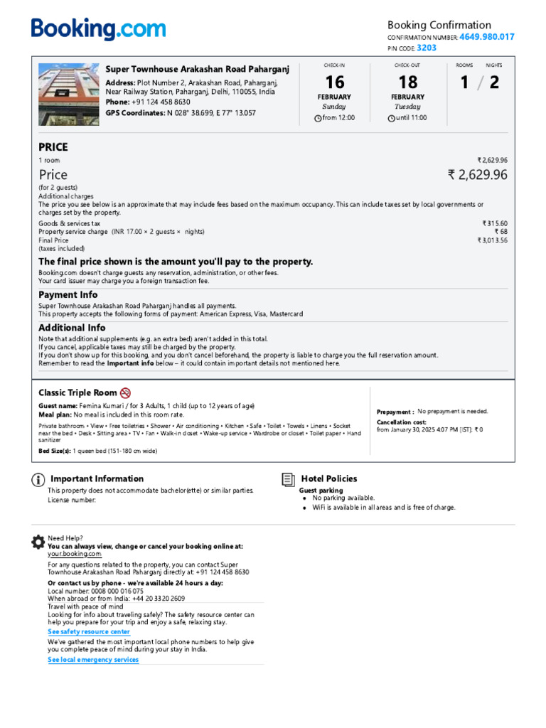 Hotel Booking Confirmation: Golden Gate | PDF | Payments | Fee