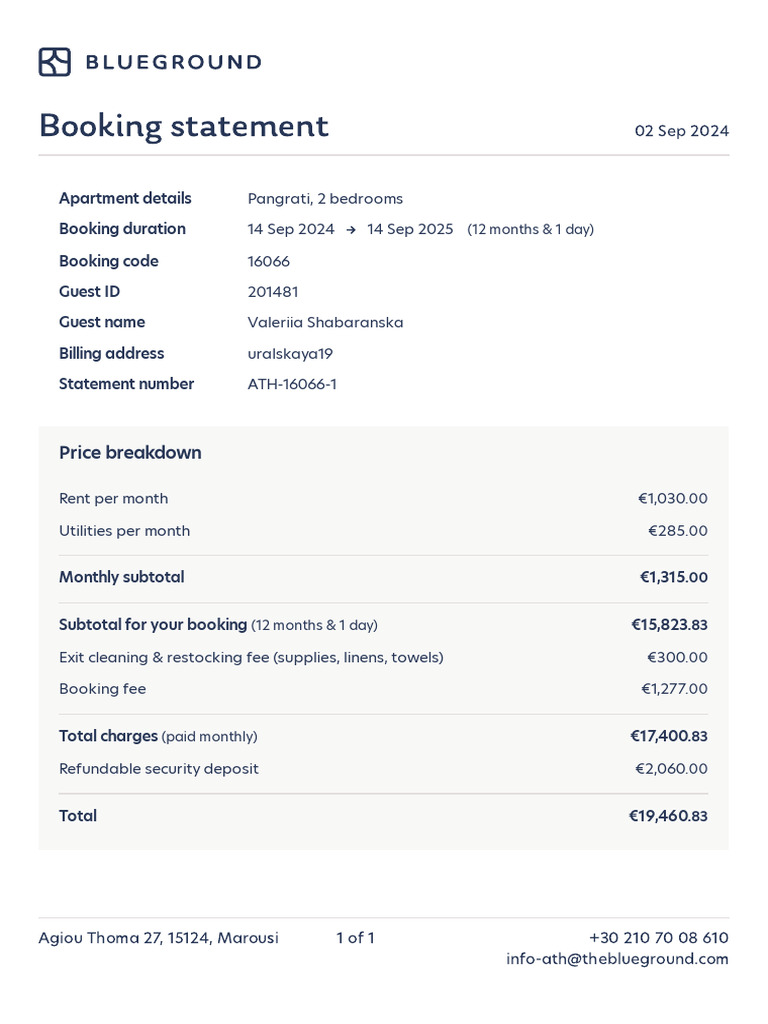 Doctempl - Belarus Airbnb booking statement template in Word and PDF ...
