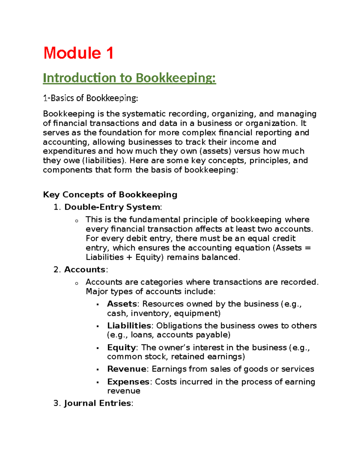 Module 1 - Introduction to Bookkeeping and Financial Documents Notes ...