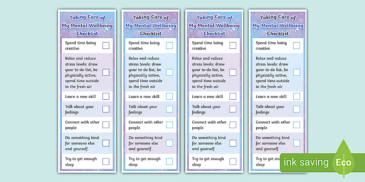 Taking Care of My Mental Wellbeing Bookmark Checklist