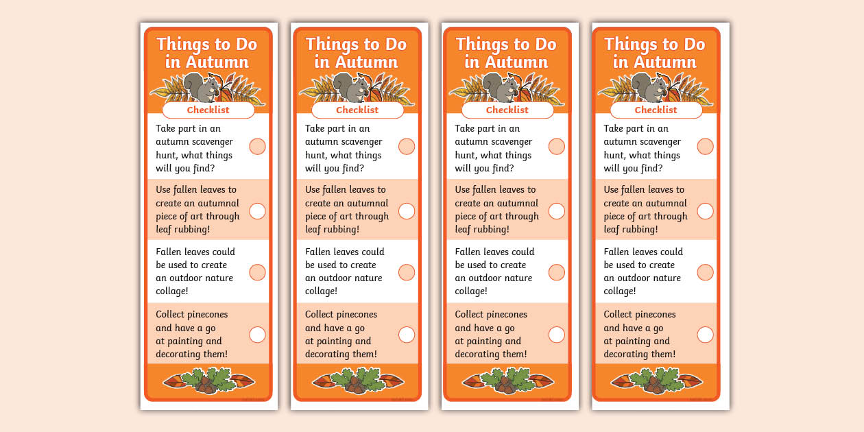 Things to Do in Autumn Bookmark Checklist (professor feito)
