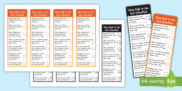 * NEW * Stay Safe in the Sun Bookmark Checklist - Twinkl