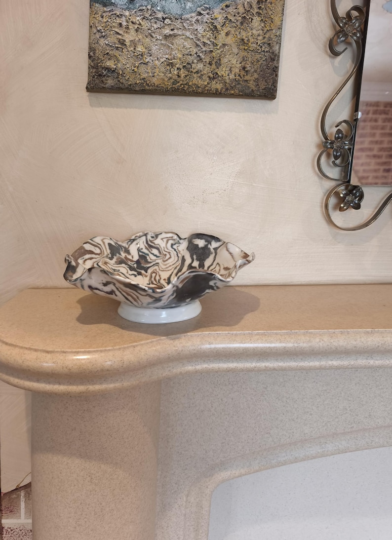 Ceramic Bowl With Waved Edges – Black Brown Stripes, Marble Effect ...