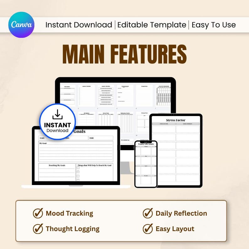 Anxiety Journal Printable, Mental Health Planner PDF, Self Care Mood ...