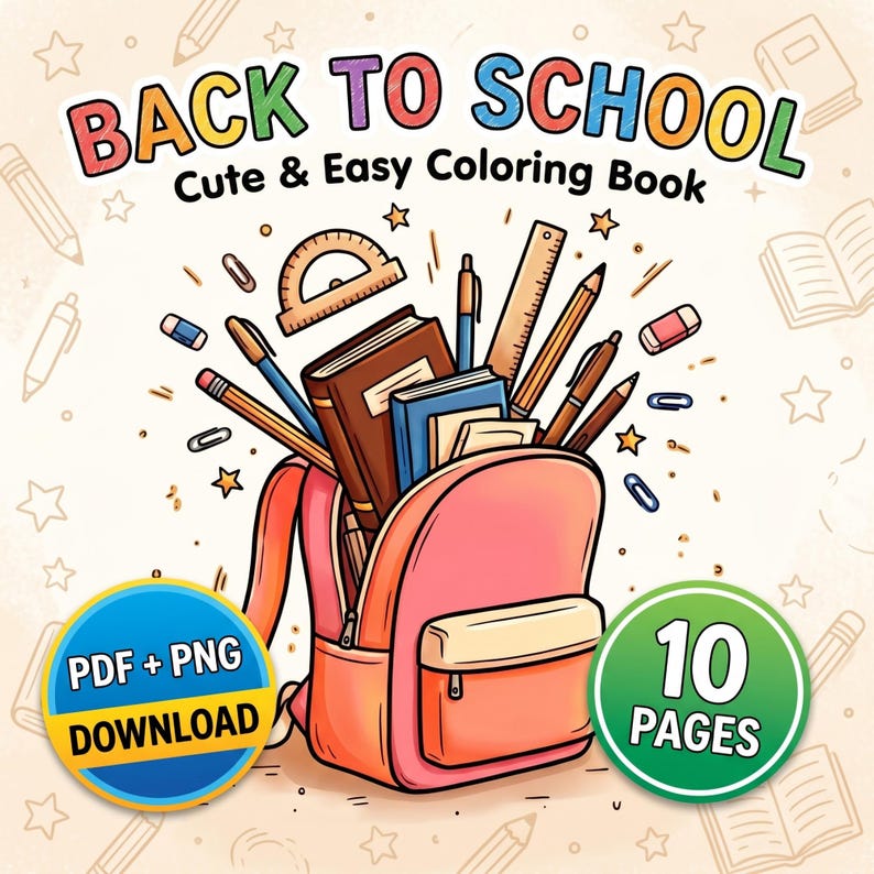 Back to School Coloring Pages for Kids, Printable Activity Sheets (PDF ...