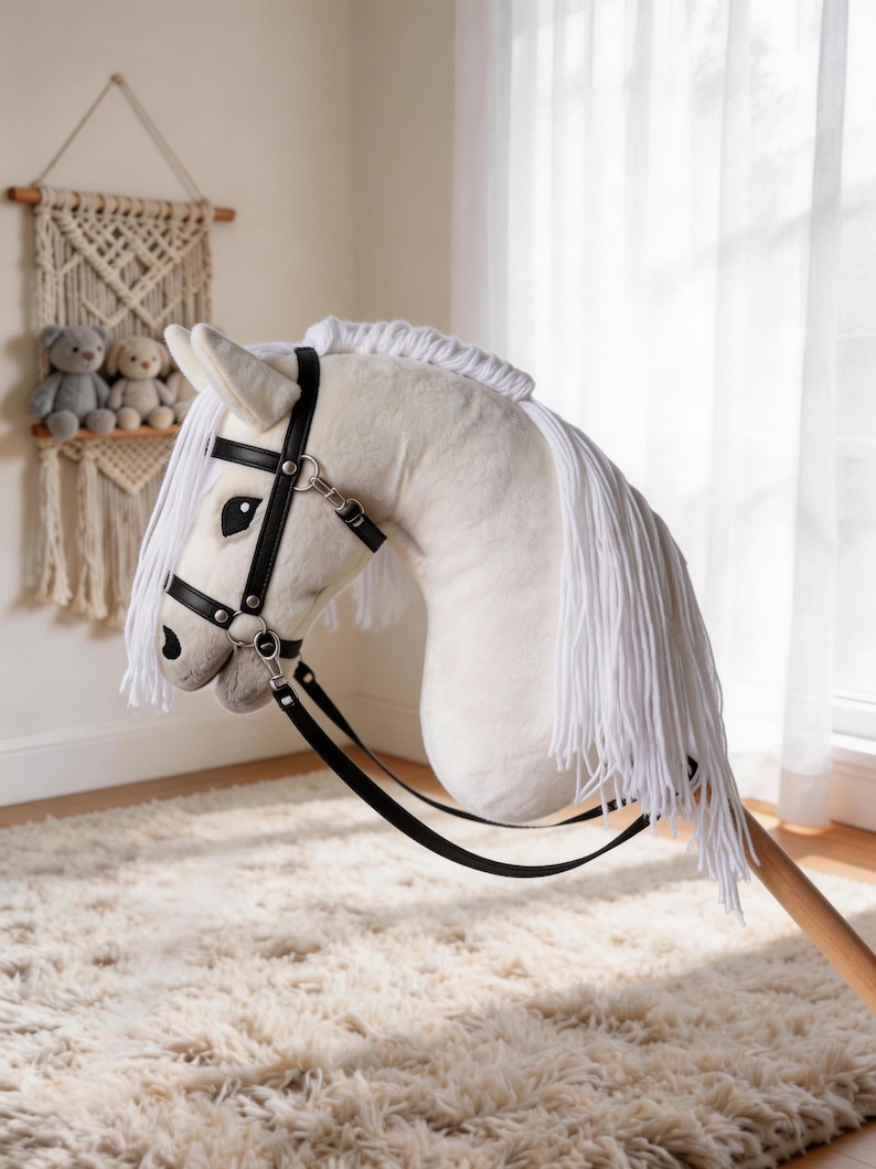 Hobby Horse White With Bridle & Reins Wooden Stick Kids Gift - Etsy