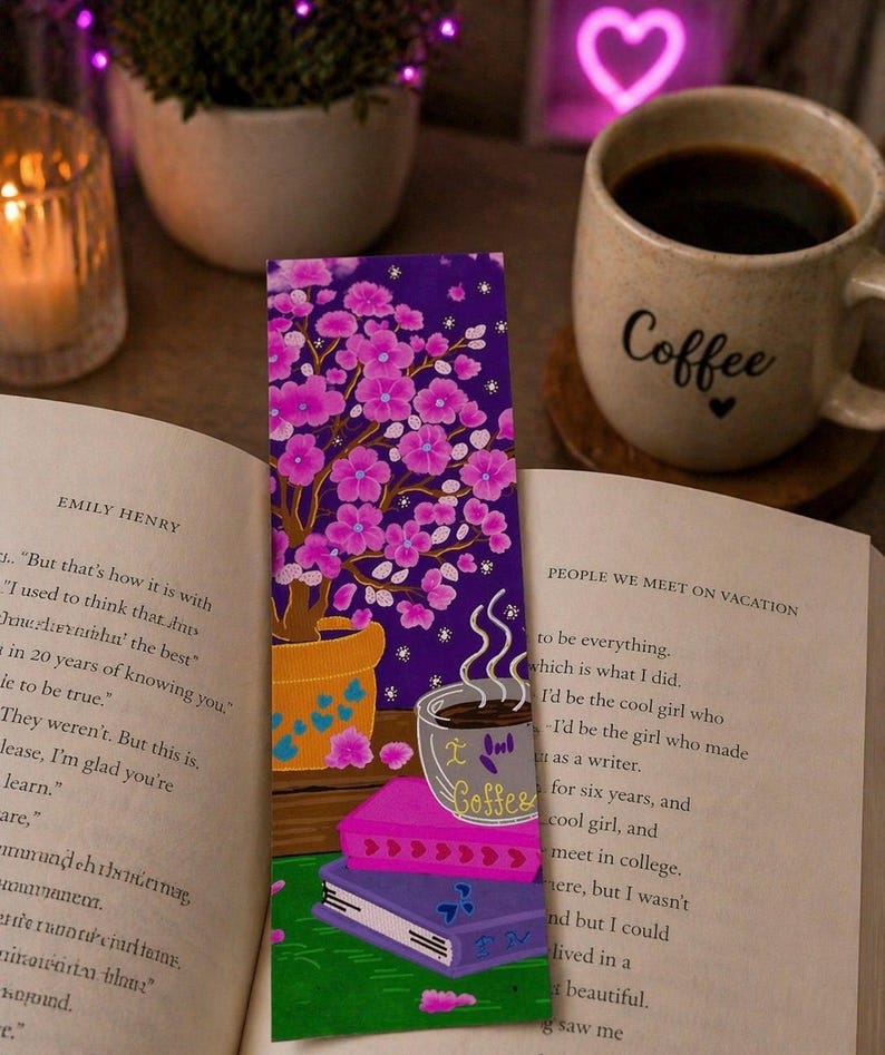 ASL Cherry Blossom Coffee Bookmark, Cozy Reading Book Lover Gift - Etsy