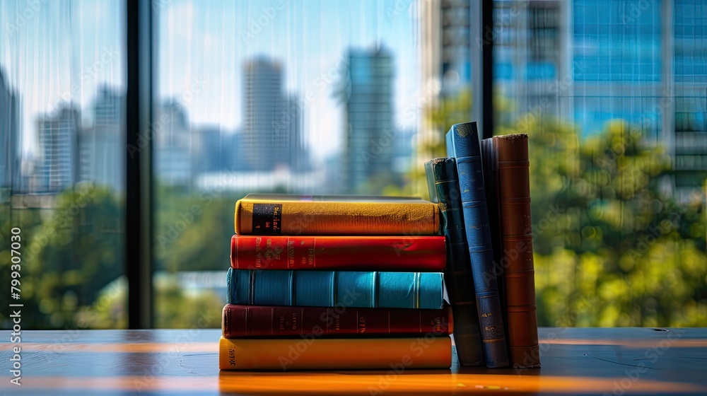 stacks of orderly books, neatly arranged, perfect for backdrops, and ...
