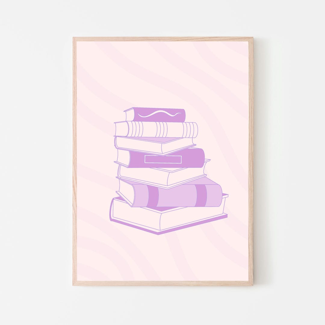 Stack of Books Print Bookish Reading Poster Cute Library Decor Girly ...