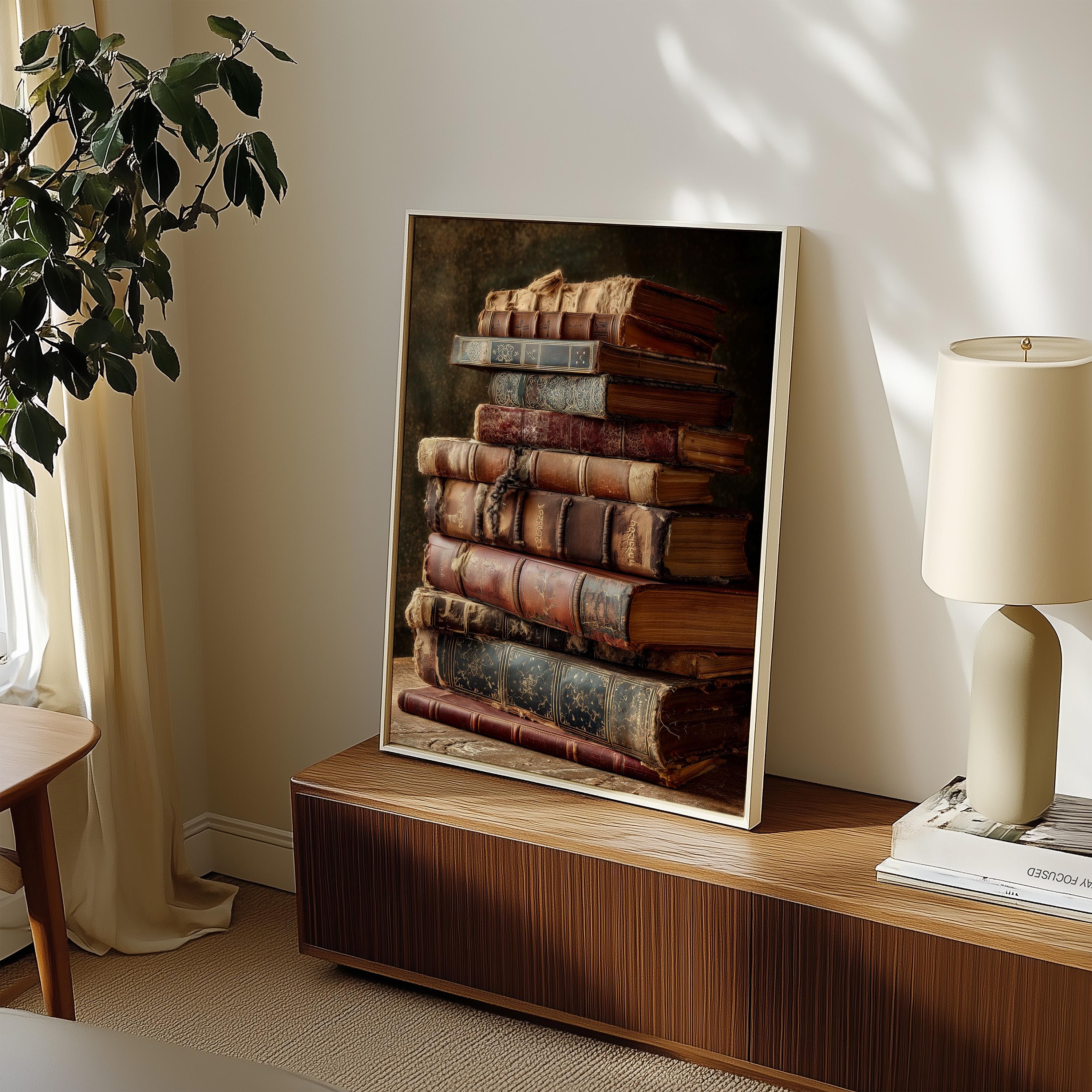 Vintage Book Stack Poster - Antique Books Wall Art - Library Poster ...