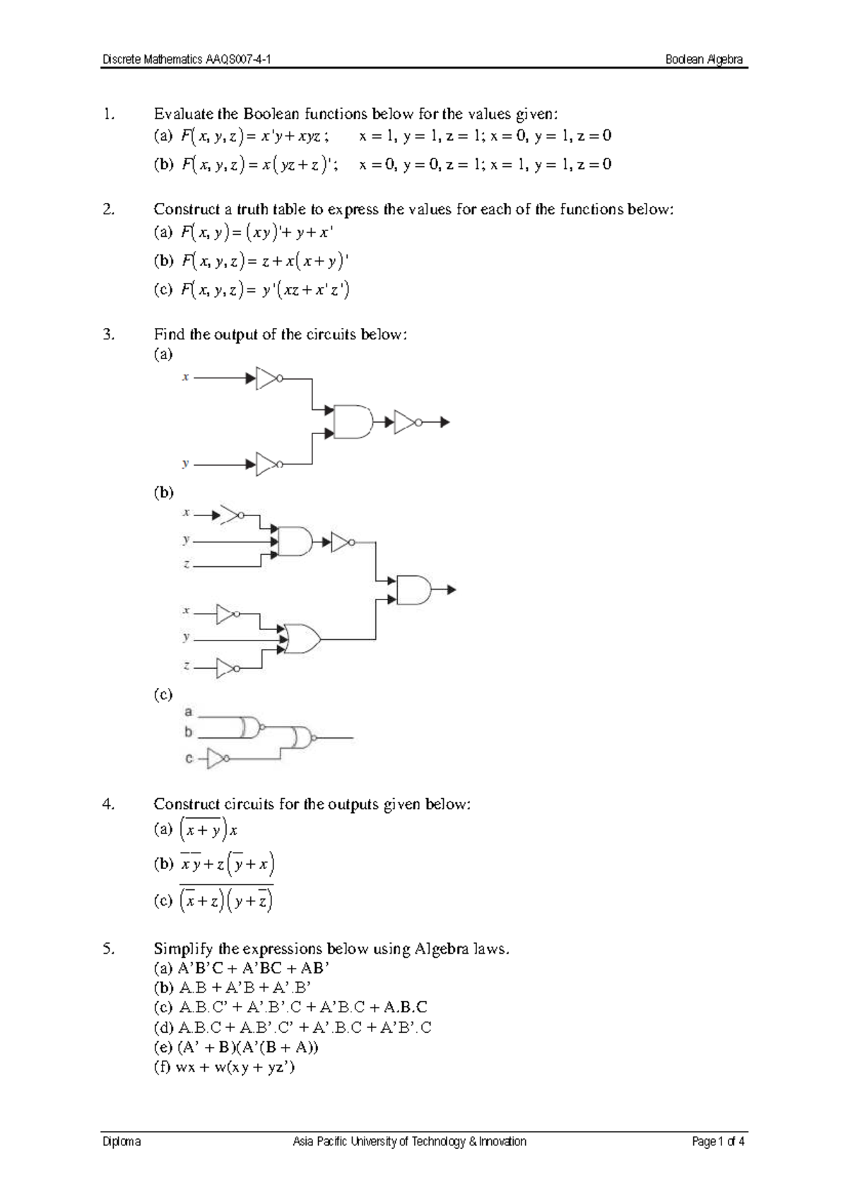 T6 Discrete Mathematics: Boolean Algebra Study Guide - Studocu