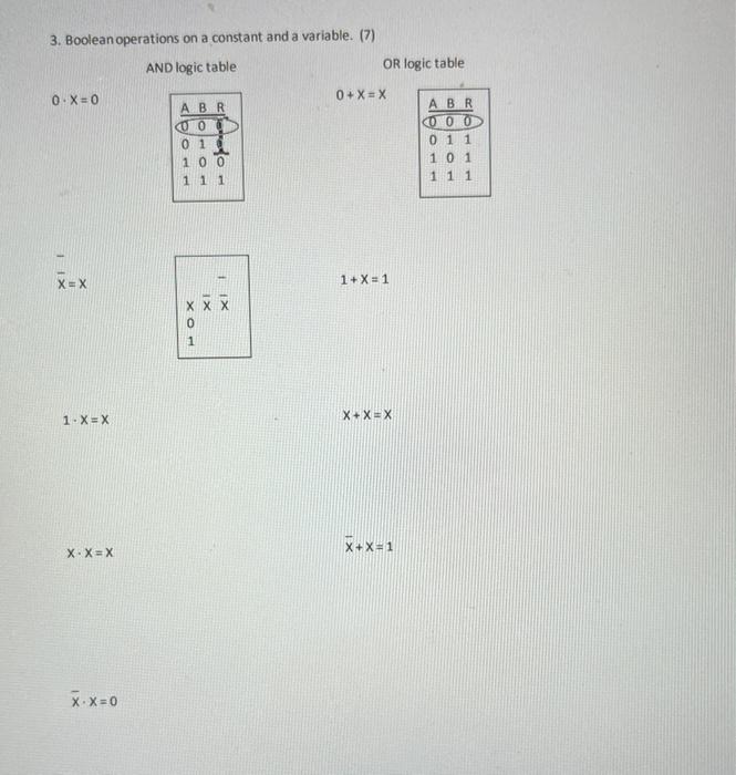 Solved 3. Boolean operations on a constant and a variable. | Chegg.com
