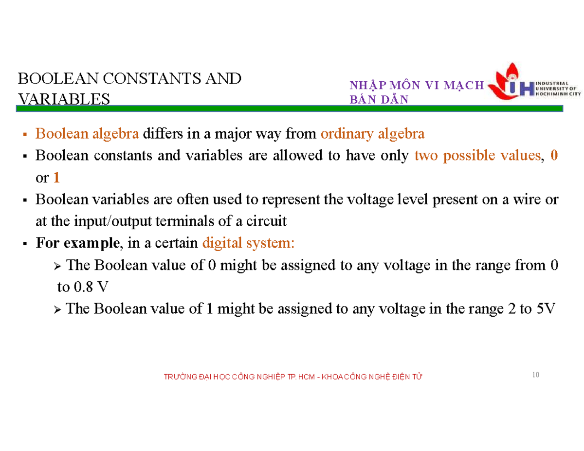 BOOLEAN CONSTANTS & VARIABLES IN DIGITAL CIRCUITS - NHẬP MÔN VI MẠCH ...
