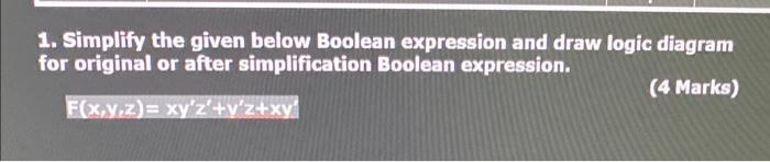 Solved 1. Simplify the given below Boolean expression and | Chegg.com