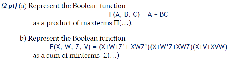 Solved Question 4. (2 points) Given a Boolean function, a | Chegg.com