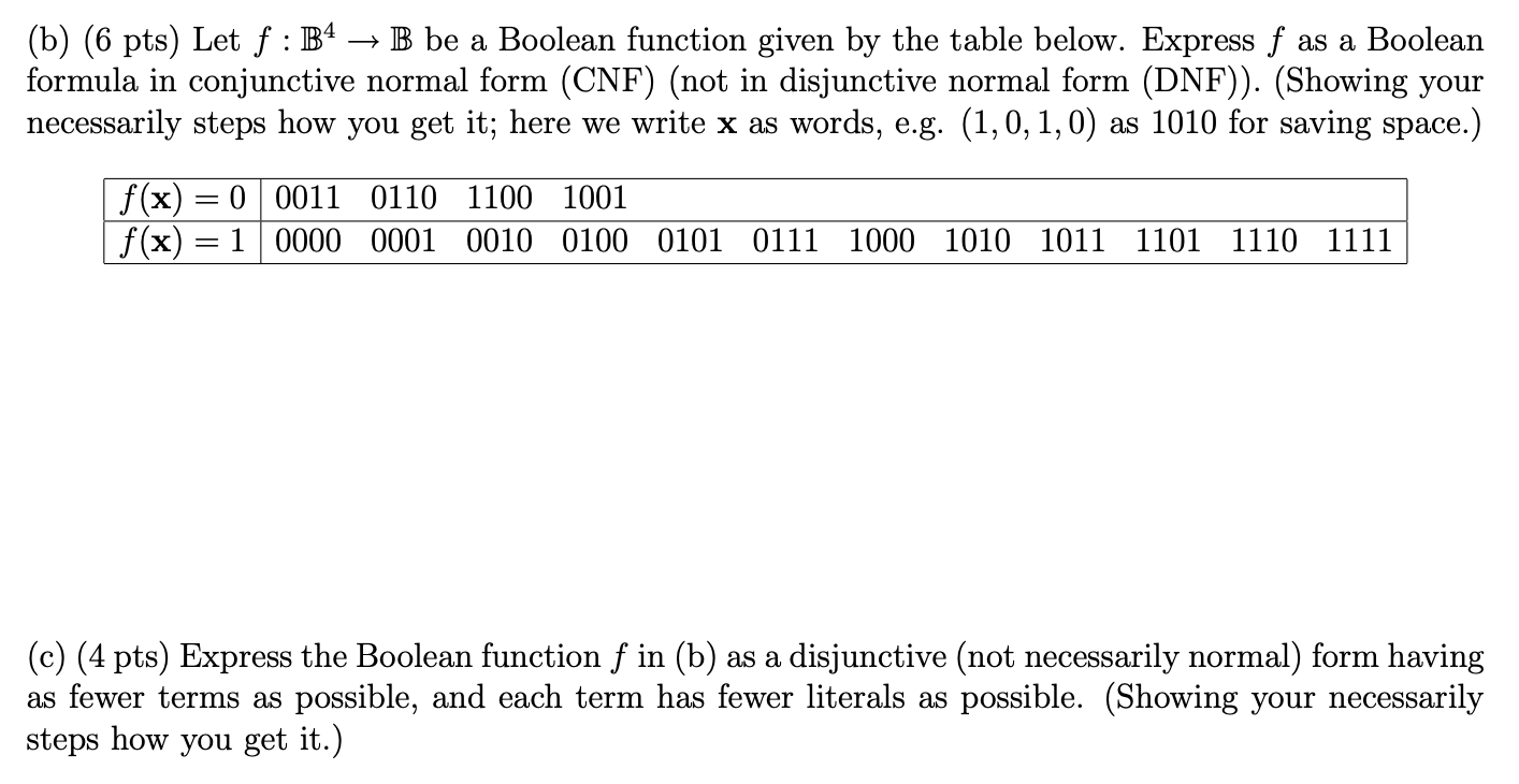 Solved (c) (4 pts) Express the Boolean function f in (b) as | Chegg.com