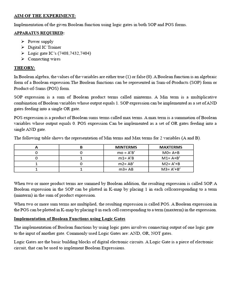 Title - Implementation of A Boolean Function Using Logic Gates | PDF ...