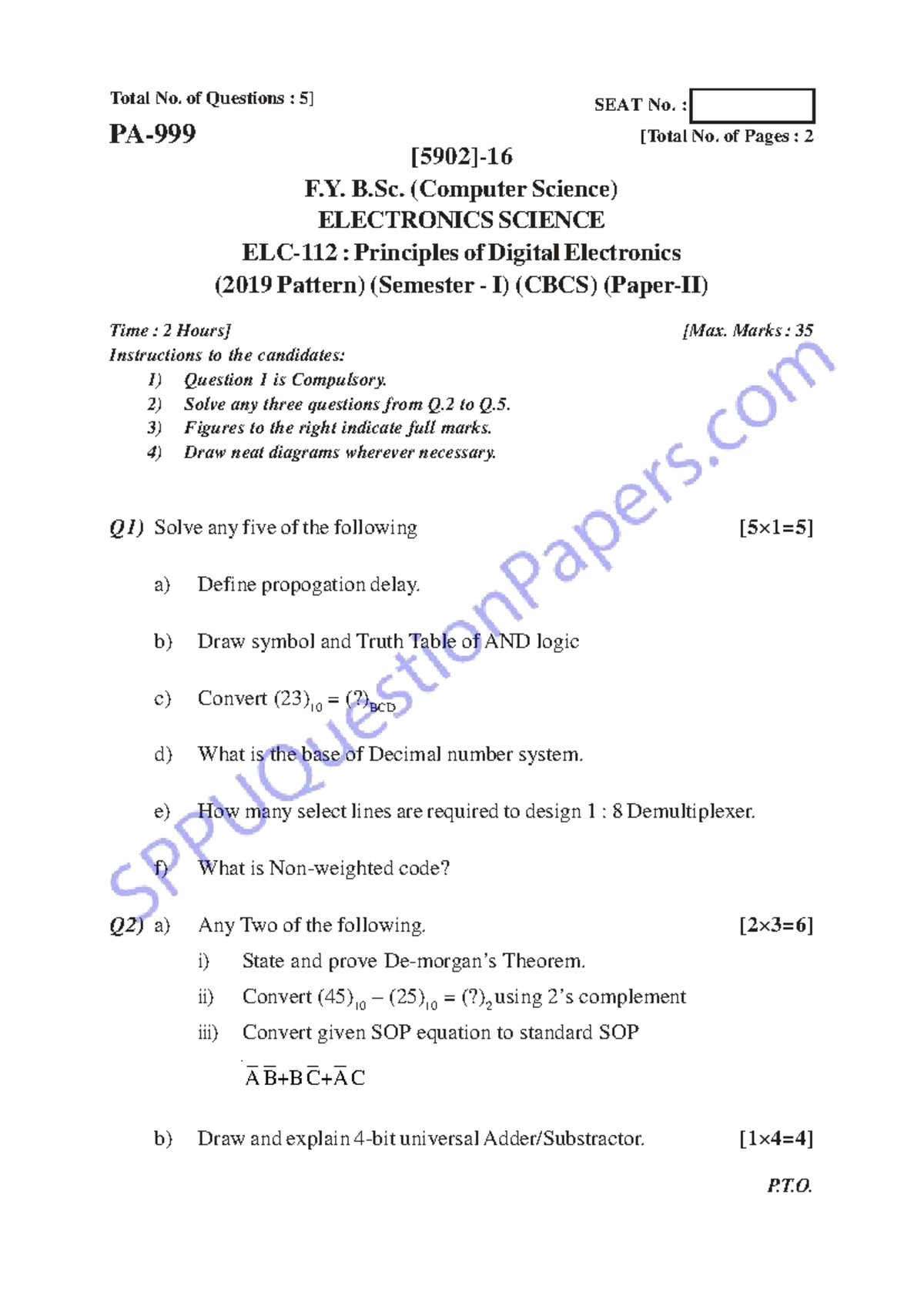 B.Sc. (CS) Semester I: Principles of Digital Electronics Exam Nov 2022 ...