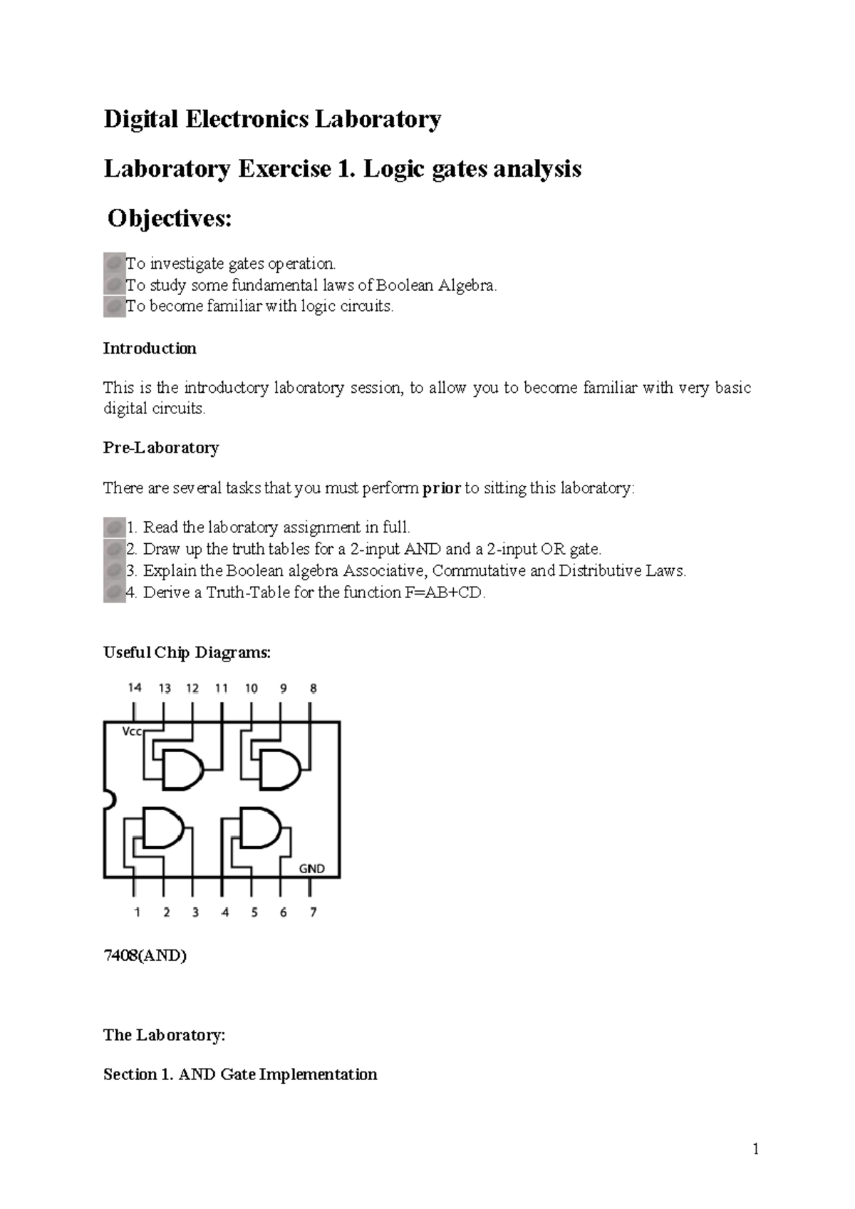 Digital Electronics Lab 1: Logic Gates & Boolean Algebra Analysis - Studocu