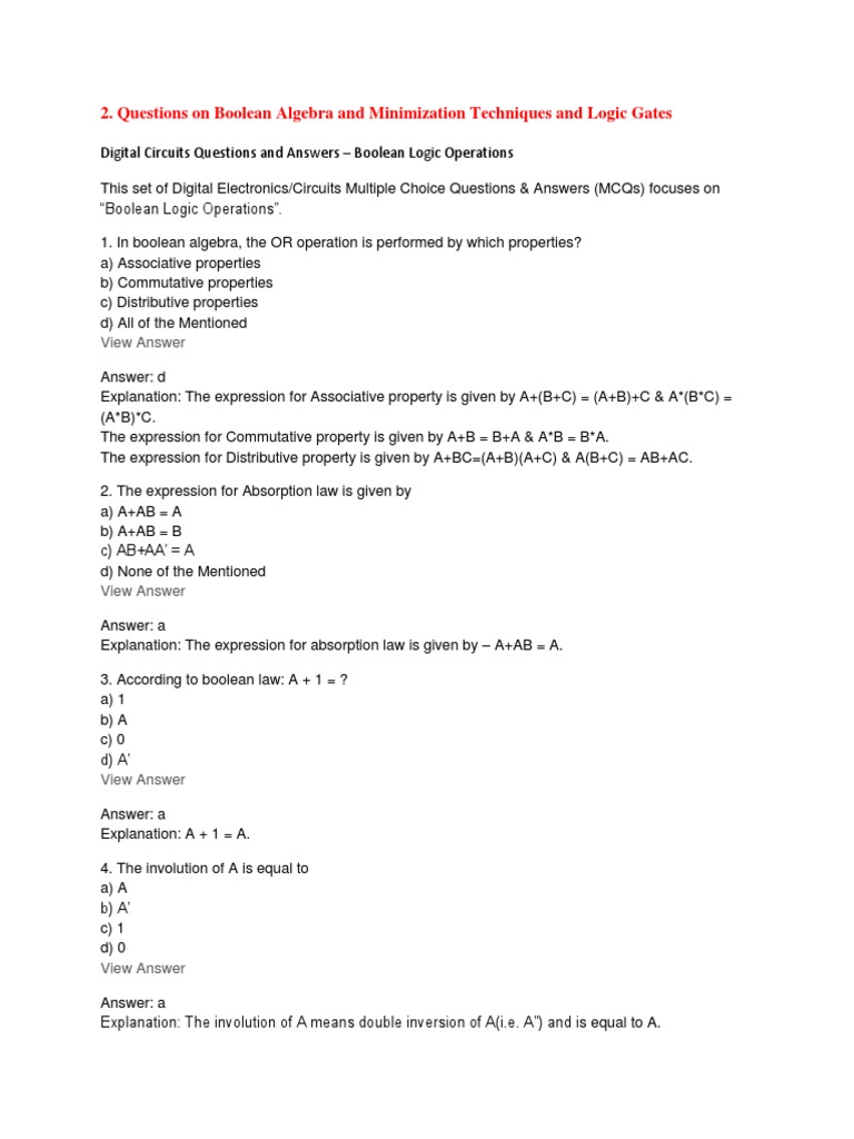 Boolean Algebra Questions With Solutions | PDF | Boolean Algebra ...