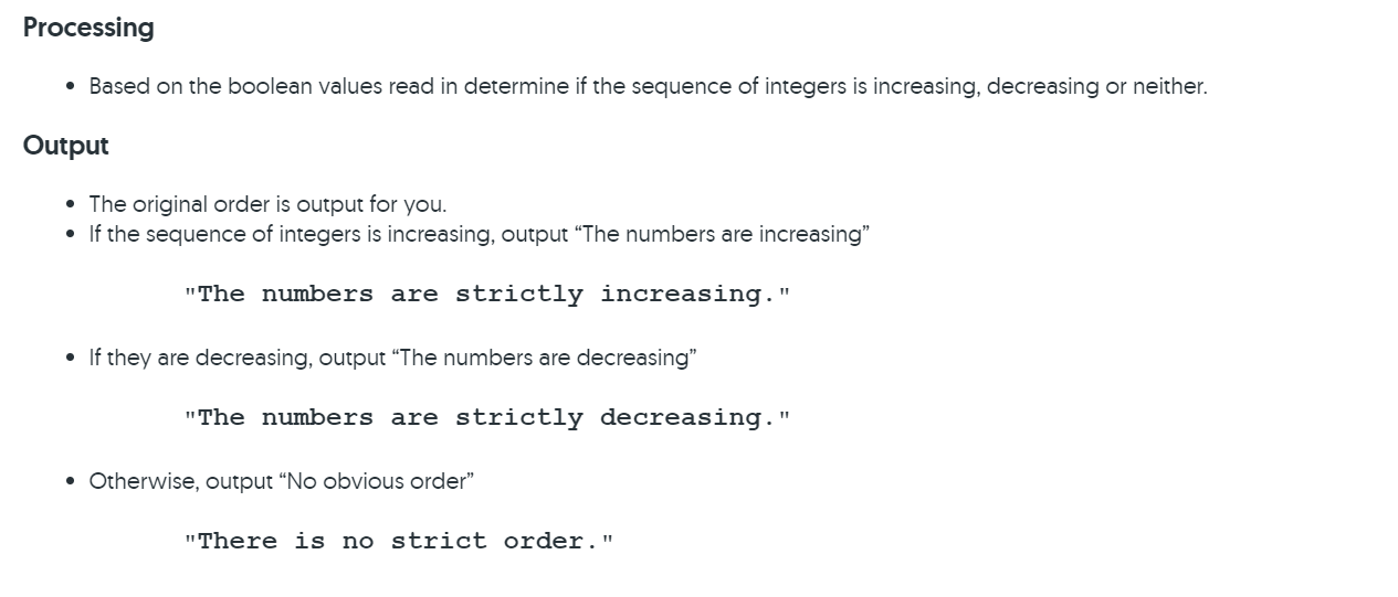Solved Processing • Based on the boolean values read in | Chegg.com