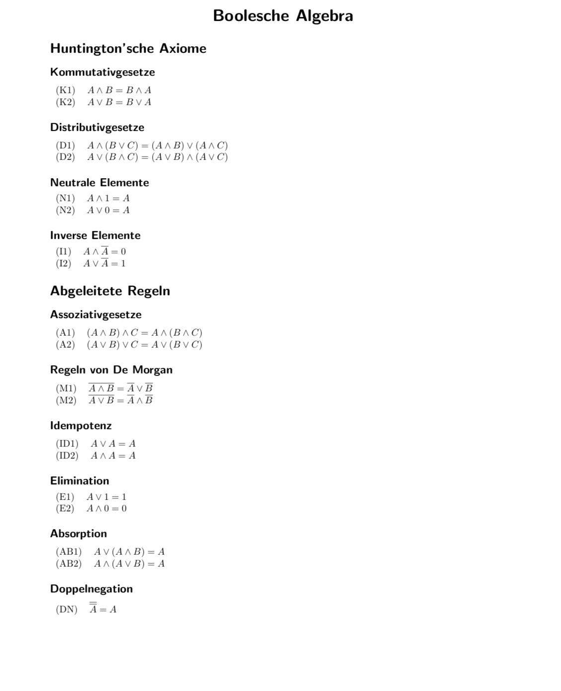 Zusammenfassung Boolsche Algebra -BookscheAlgebra E Idempotenz X1y ...