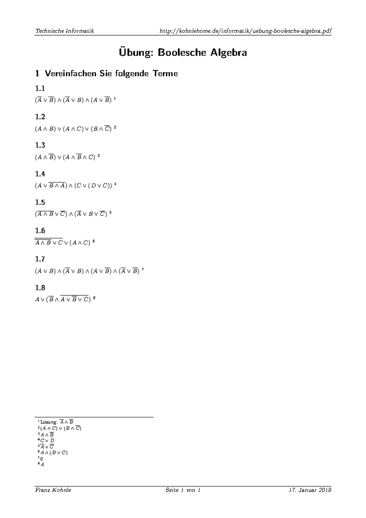 Boolesche Algebra Vereinfachen Übungen mit Lösungen PDF
