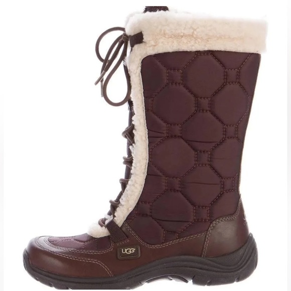 UGG Women's Capstone Quilted Brown Leather Sheepskin Waterproof Boots ...