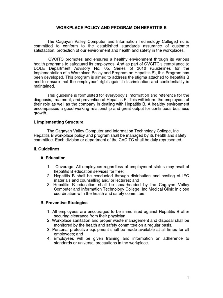 CVCITC Hepatitis - B - Workplace - Policy - Program | PDF | Employment ...