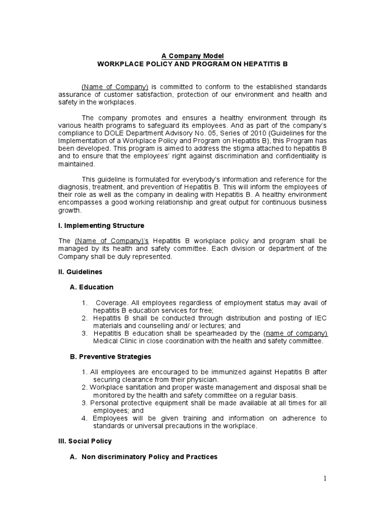Hepatitis B Workplace Policy & Program | PDF | Hepatitis | Employment