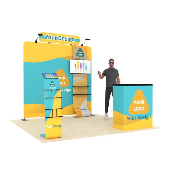 10ft Trade Show Booth with Tension Fabric Backwall and Podium | AOM ...