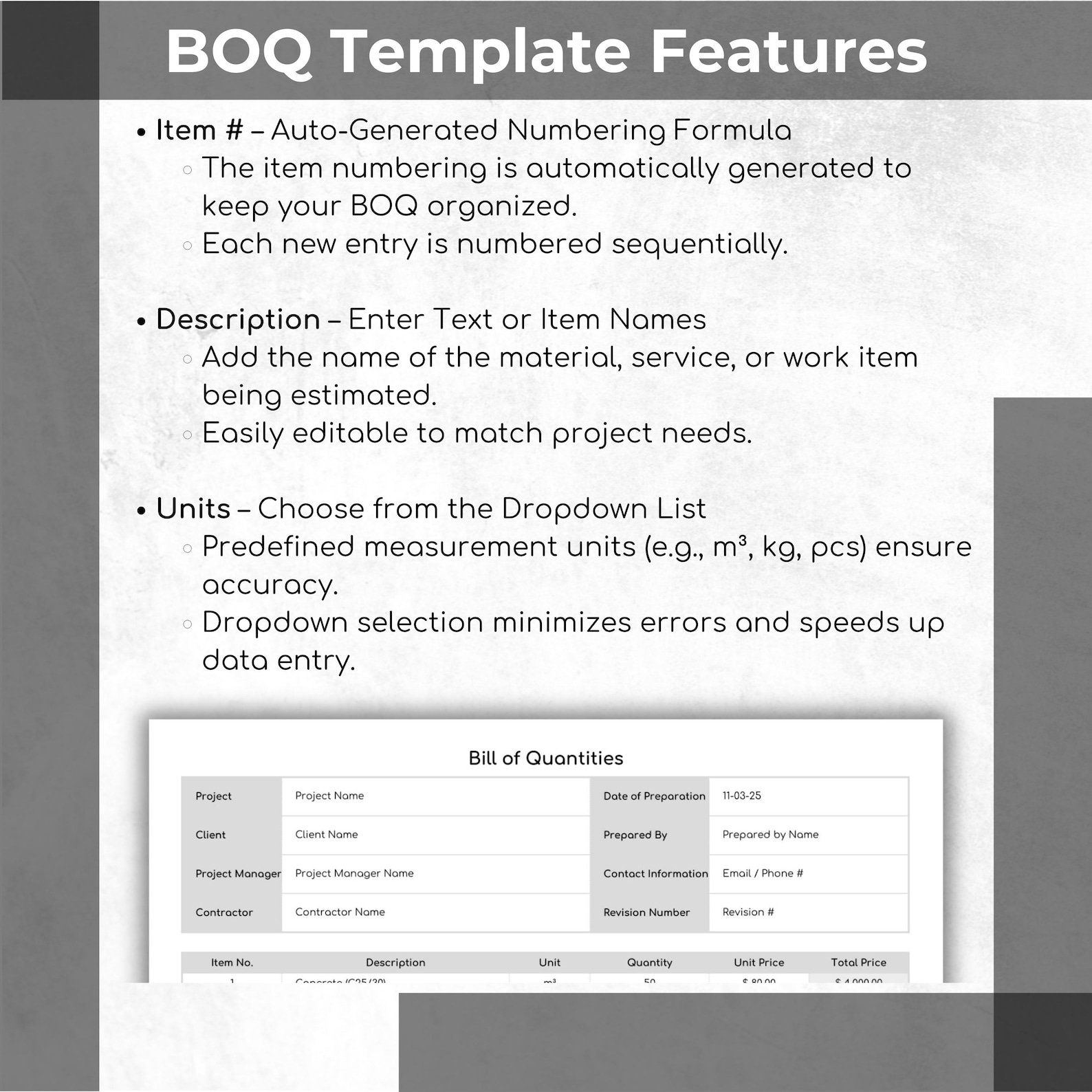 Bill of Quantities (BOQ) Template: Construction Cost Estimation (excel ...