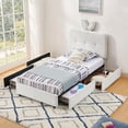 Aisword Twin Upholstered Bed Frame with 4 Storage Drawers & Rabbit Ear ...